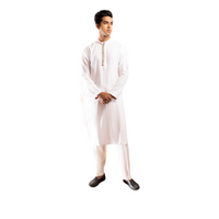 Introducing a timeless fashion statement, our product showcases the everlasting charm of white. The sheer elegance of white fabric is beautifully enhanced by delicate peach-colored piping. This exquisite long kurta boasts full sleeves, a standing collar, and is adorned with wooden buttons.